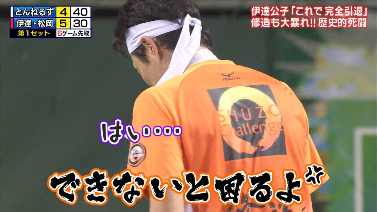てんつく Rnメイクィーン男爵 松岡修造のボールがタカちゃんを直撃w 松岡の妖怪体操謝りに タカちゃん ぶっ殺すからな www とんねるずのスポーツ王 Http T Co Vfvh0qsrq5